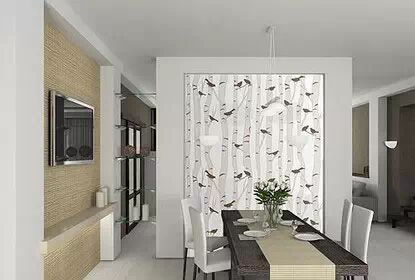 这道墙的设计可以说是传统别墅装修设计的继承和发展,房间的背景墙是常用的白色和米色搭配,本无任何新意和亮点,但中间餐厅的隔板瞬间让整个房间变得有趣不少。没有使用多么复杂和罕见的图案的壁纸图案,而是尊崇简单至上的别墅装修设计创作原则,延续别墅装修设计空间的竖条纹,鸟则为整个素色空间带来了活力。