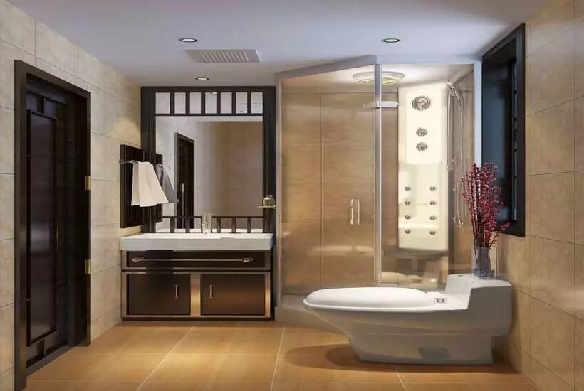 现代中式别墅卫生间装修简洁,干净。整个空间功能运用恰当,实木家具的搭配独具匠心,充满着闲情雅趣,营造一种浓郁的文化氛围