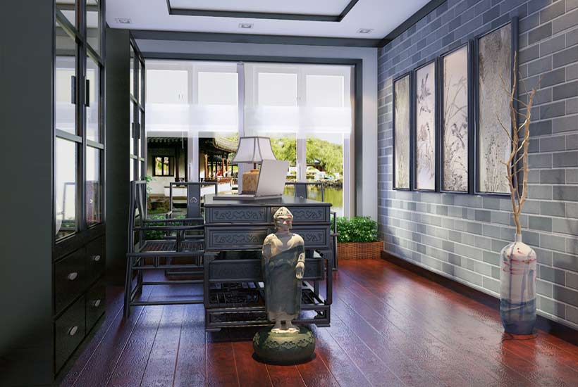 现代中式别墅书房糅合着古典风韵,明亮,安静。艺术魅力独特,舒缓的意境是中式特有的风情,诗意般的端庄风华,格调高雅。